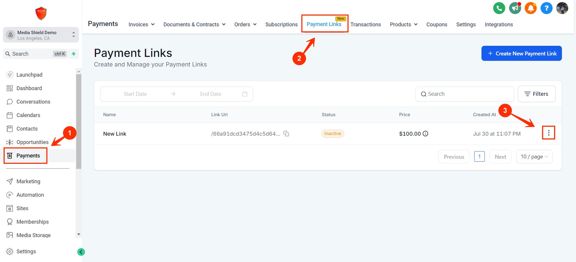 Navigate to the Payments Tab: Go to Payments Tab > Payment Links > Edit.